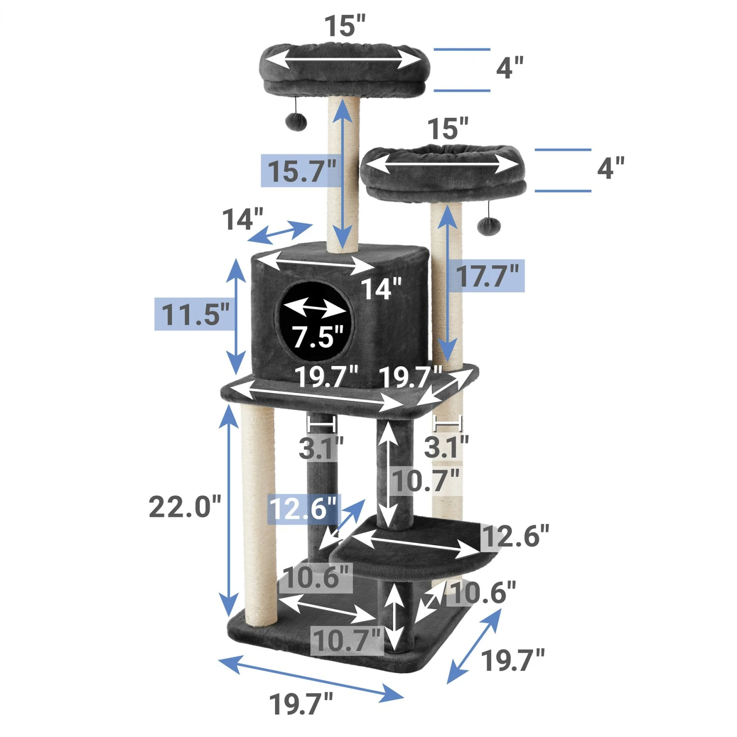- 55-inch design with lots of comfortable spots to scratch, play, nap, relax and perch.