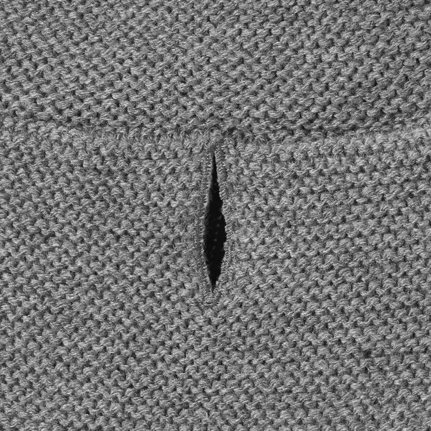 - Grey knit sweater with cozy sherpa lined hood.