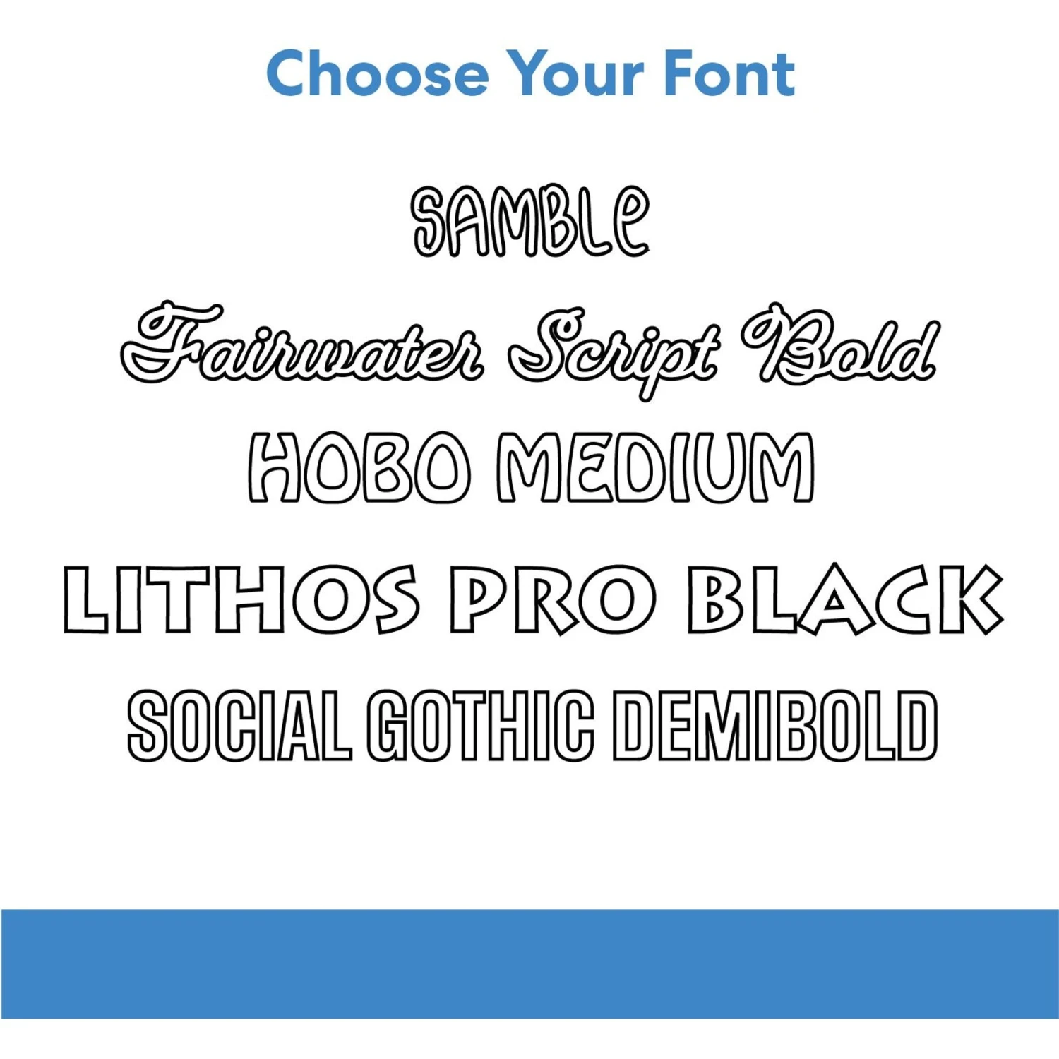 • Personalizable design lets you add up to two lines of text in one of five fonts, with up to 11 characters on the first line and seven characters on the second line.